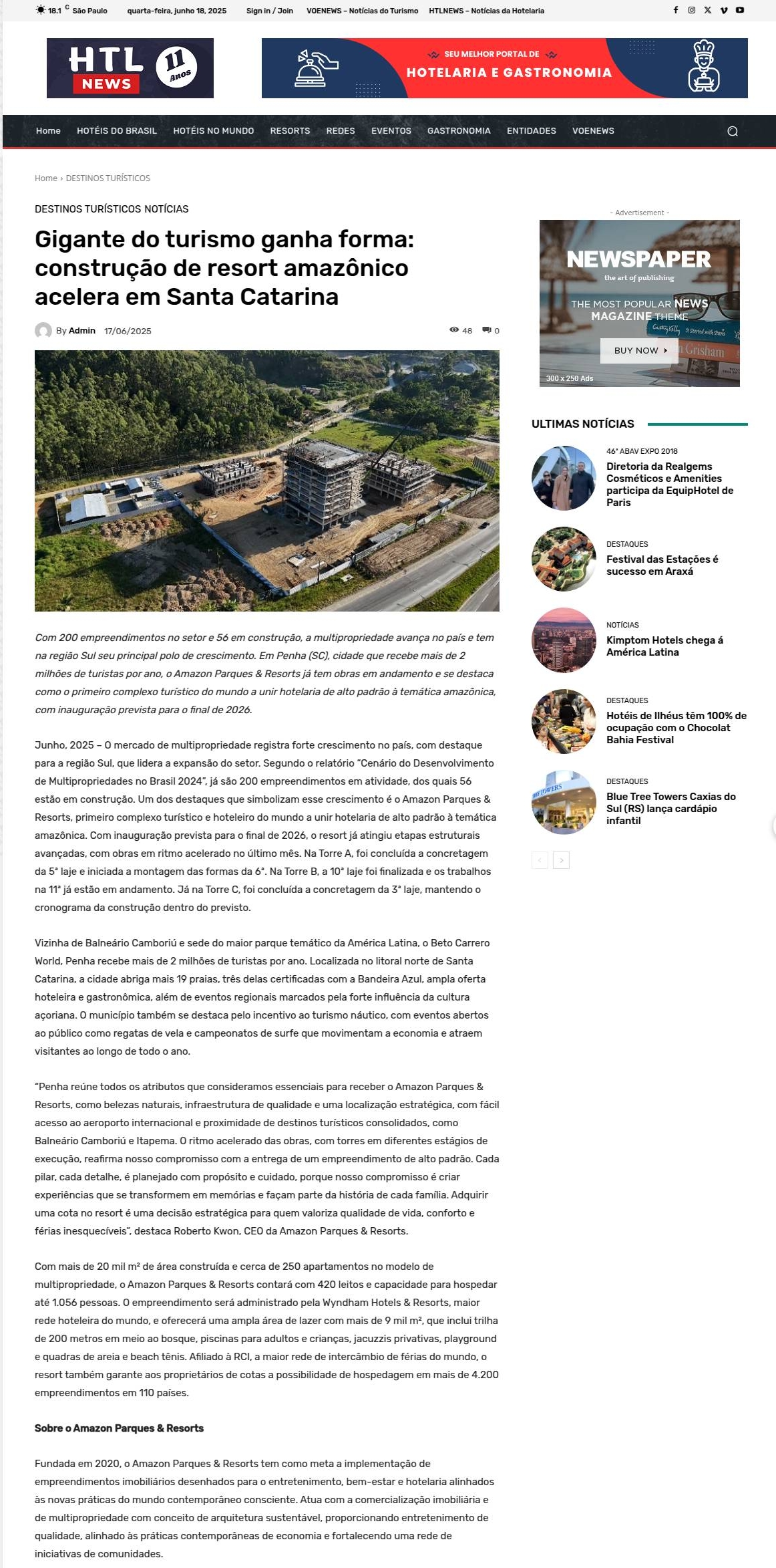 Gigante do turismo ganha forma: construção de resort amazônico acelera em Santa Catarina HTLNEWS - Notícias da Hotelaria e Gastronomia