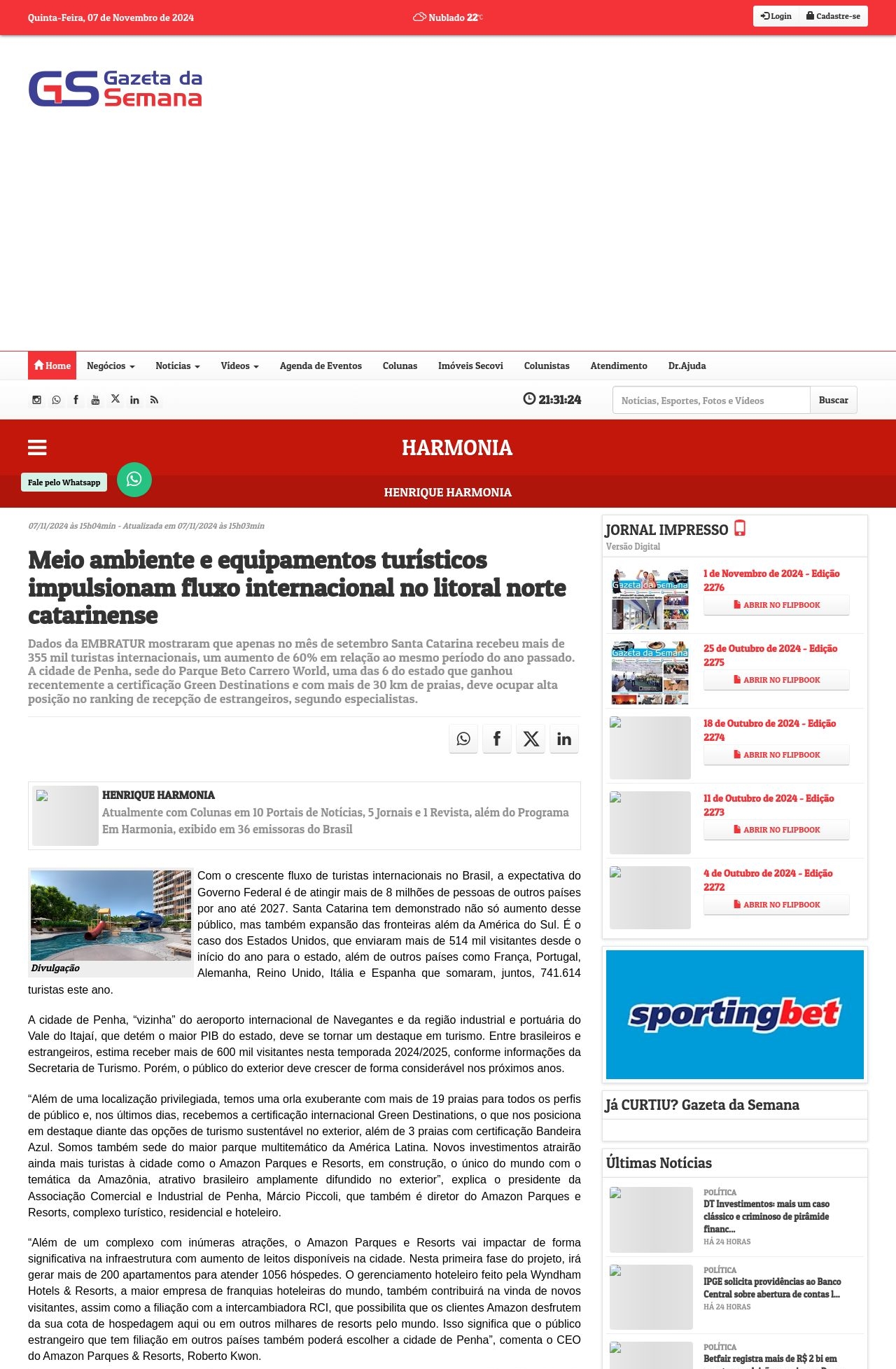 https://gazetadasemana.com.br/coluna/12997/meio-ambiente-e-equipamentos-turisticos-impulsionam-fluxo-internacional-no-litoral-norte-catarinense
