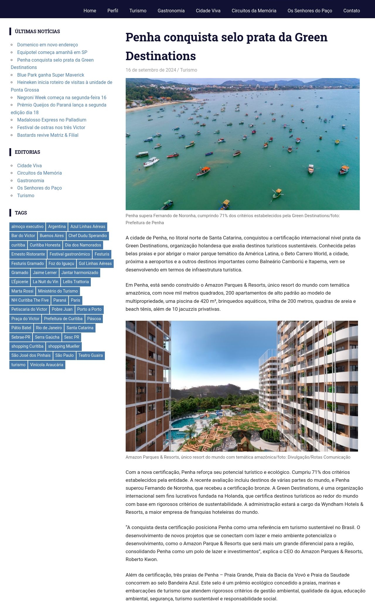 Penha supera Fernando de Noronha, cumprindo 71% dos critérios estabelecidos pela Green Destinations/foto: