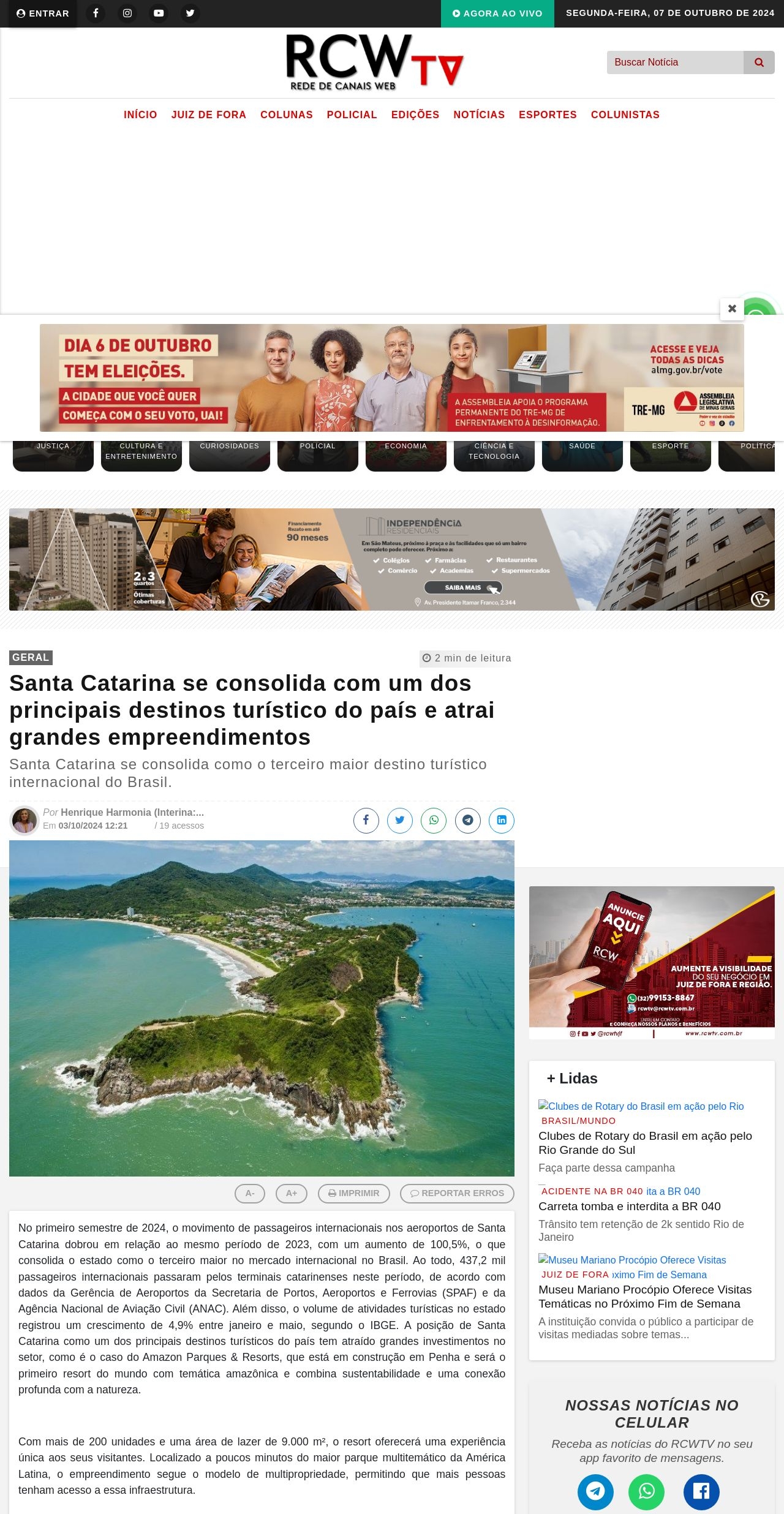 Santa Catarina se consolida com um dos principais destinos turístico do país e atrai grandes empreendimentos - RCWTV