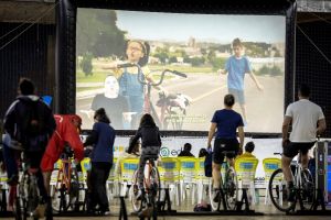 Cinema ao ar livre movido a energia limpa de bicicletas estreia em Penha (SC)